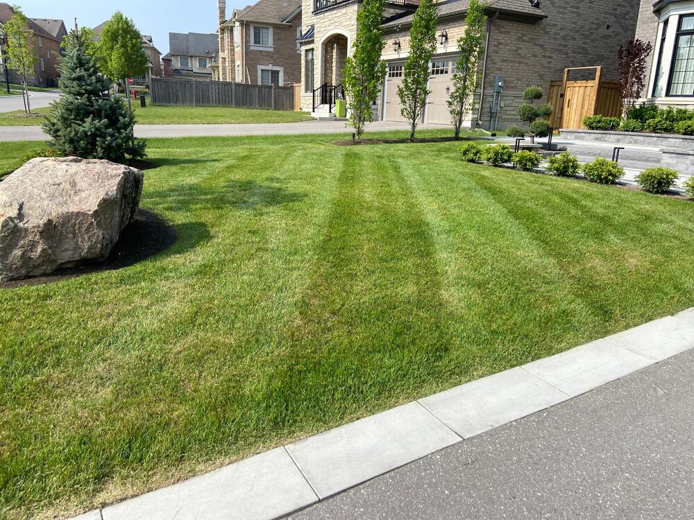 Regular mowing with professional-grade equipment to maintain an even, manicured look and encourage healthy, dense grass growth.